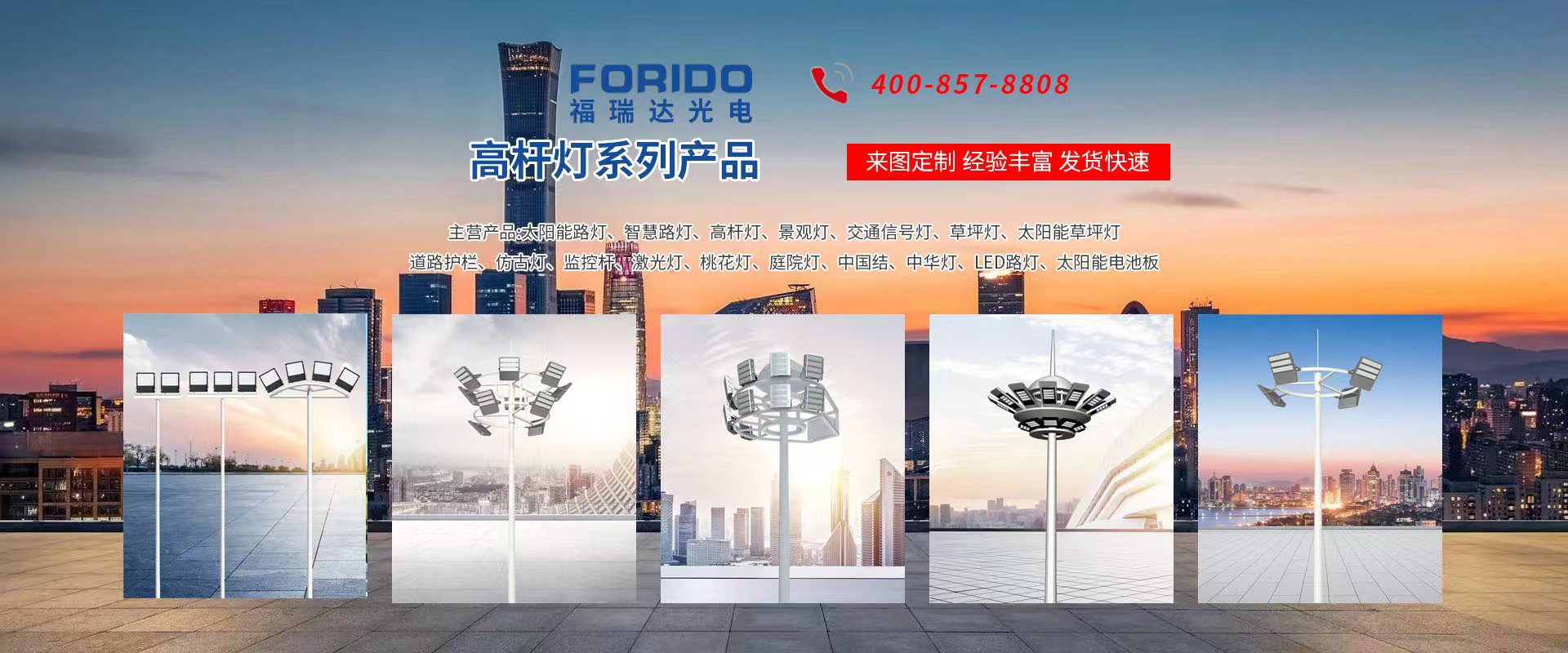 揚(yáng)州福瑞達(dá)光電科技有限公司位于淮左名都?xì)v史文化名城、中國路燈制造基地?fù)P州市北郊菱塘工業(yè)園,公司占地面積76000平方米,注冊資金10518萬元,擁有高級技術(shù)嫻熟的員工280多人,擁有大型折彎機(jī)、激光切割、數(shù)控注塑機(jī)、壓鑄機(jī)、自動(dòng)埋弧焊、氣焊、彩色粉末靜電噴塑等大型自動(dòng)化設(shè)備,我公司是一家集設(shè)計(jì)、研發(fā)、生產(chǎn)、銷售、施工安裝服務(wù)為一體的戶外交通照明產(chǎn)品制造商,主要生產(chǎn)智慧路燈、太陽能路燈、LED路燈、高桿燈、景觀燈、交通信號燈、交通標(biāo)志牌、通信鐵塔、路跨鋼結(jié)構(gòu)、公交站臺、太陽能光伏組件、景點(diǎn)亮化、樓宇亮化工程的設(shè)計(jì)施工等。公司秉承開拓創(chuàng)新、銳意進(jìn)取、精誠服務(wù)的企業(yè)精神,堅(jiān)持以“誠信為本、技術(shù)為先、服務(wù)是金”的合作理念,我們憑借先進(jìn)的制造工藝、優(yōu)質(zhì)的產(chǎn)品質(zhì)量、合理的市場價(jià)格和完善的售后服務(wù)贏得了廣闊的市場和客戶的信賴。 我公司已通過ISO9001質(zhì)量體系認(rèn)證、ISO14001環(huán)境管理體認(rèn)證,CQC產(chǎn)品認(rèn)證,中國節(jié)能產(chǎn)品認(rèn)證,通過“CCC”強(qiáng)制性產(chǎn)品認(rèn)證,具有市政總承包,照明,交安,設(shè)計(jì)等資質(zhì)···
